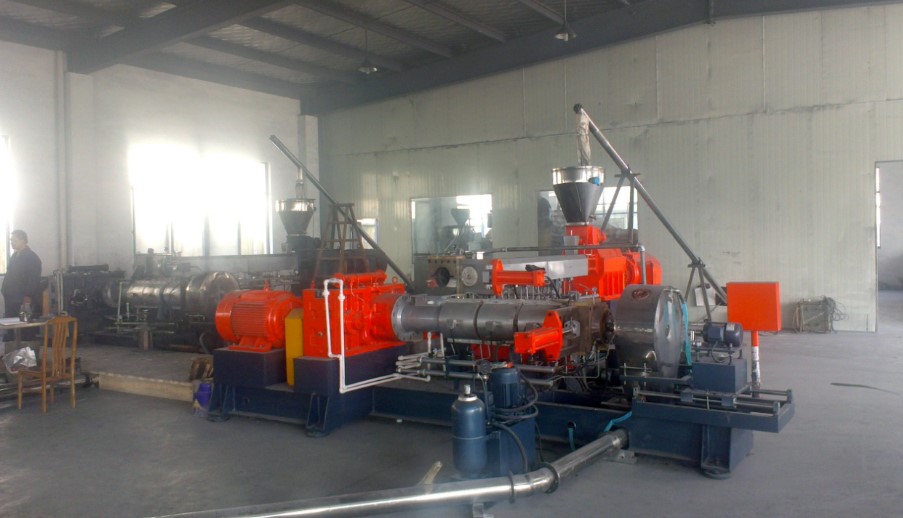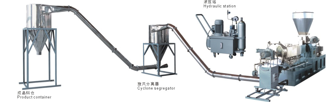 該設(shè)備可由雙螺桿擠出機(jī)實(shí)現(xiàn)對(duì)物料的剪切、混煉, 由單螺桿擠出機(jī)完成擠出、造粒??茖W(xué)